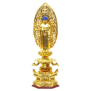 商品説明 宗派 浄土宗(菩提寺でご確認ください) 仕様 ●材質 木製 ●仕上 総金箔肌粉 ●光背 飛天光背 ●台座 京型ケマン座 ●寸法 ・4.0寸 総丈: 319mm、台幅: 113mm、奥行: 84mm...