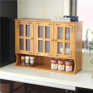 > カウンター上収納 調味料入れ 幅68cm リーフ柄 ライトブラウン 上置き 引き戸 収納棚 両面開閉 木製 キッチン 台所 完成品 【ジャンル・特徴】 カウンター上 収納 調味料入 スパイスラック...