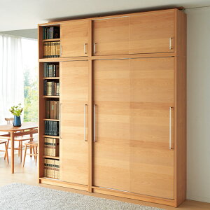 木目が美しいアルダー天然木を使用した、贅を尽くした本棚です。お部屋を柔らかな印象に彩る贅沢書庫。引き戸で省スペースながら工夫満載、大量収納が可能です。〜本を大切にする人の