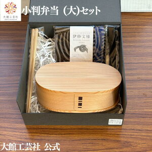 曲げわっぱのお弁当箱の中で男性に人気がある小判弁当(大)、ハンカチ、ランチベルト、杉箸がセットになった商品です。 「お手入れと使い方」のリーフレットの栞も同封いたします。 大館工芸社の弁当箱はウレタン塗装をしているので