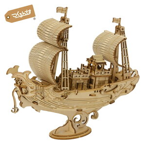 世界で人気の3Dパズルが日本語説明書付きで登場! お子様から大人まで楽しめるウッドパズル。 TG307 宝船 遠くの海から幸せを詰め込んでやってきた宝船。 波の土台に乗ったウッドパズルです。 このキットは、カット済みウッドシートとサン