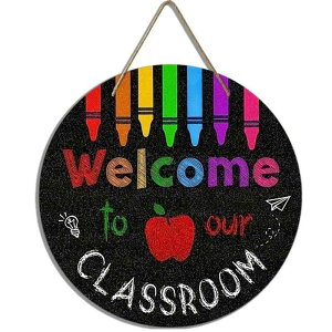 ダイナミックドアの装飾のアイデア]:お祝いのクレヨンをテーマにしたウェルカムバックサイン、学校のドアの装飾にシームレスに融合し、多様な季節の教室のテーマを補完するなど、クラスルームの装飾を介して任意の設定に魅力を追加します クリエイテ...