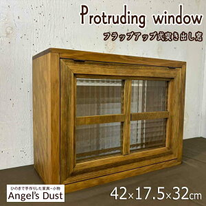 扉の内側だけに細アイアン取っ手を付けた可愛い室内窓(突き出し窓)です。 窓枠に奥行きがありますので出窓風の演出が出来ます。 フラップアップ金具付きなので開けたままの状態をキープ。 両面とも桟を入れ同じデザインになっている