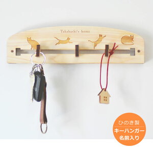 −−−−−−−−−−−−−−− キーハンガー ネコ型【名前入り】 木製のきれいな風合いが玄関とマッチする鍵収納。 玄関ですぐに大切な鍵をかけることができるので、出かける時もサッと! ひのき