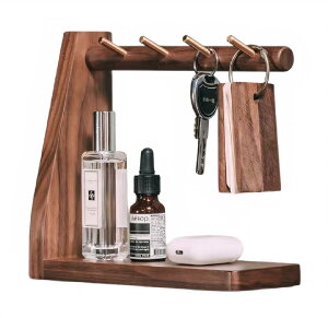 【材質】美しい木目のクルミ材とファション感溢れる真鍮棒の組み合わせがとってもおしゃれなアクセサリー収納スタンド です。 【使いやすい】腕時計や車のキー、スマートフォンや小銭など、小物類をまとめて置ける収納スペース、常に