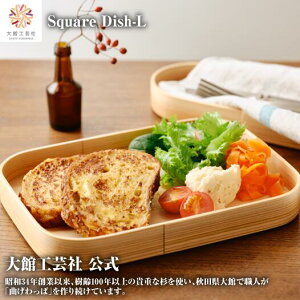 自然が描き出した杉本来のグラデーションと色のコントラストが美しい「曲げわっぱ」の大きめのスクエアディッシュ。食品衛生法適合のウレタン塗装を施してしているので、水気や油分のある食材、お料理でも大丈夫です。肉料理やお刺身