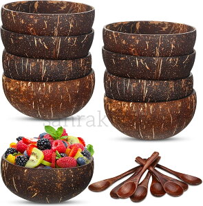 【エコフレンドリーなデザイン】ココナッツシェル製のボウルと木製スプーンで、サラダやスムージーをよりおしゃれに楽しもう!ビーガンギフトにも最適♪