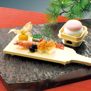 正月やお祝いの席に、羽子板の形の料理皿。 ●サイズ:約5.7×14.6cm●塗装:なし●材質:ヒノキ●製造:日本製 [検索キーワード]正月、演出、皿、敷皿、盛皿、用美、ヤマコー、38409...