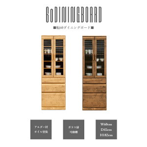 外寸:幅60 奥行45 高さ182cm 【色】 ・ナチュラル/ブラウン 【素材】 ・アルダー材(オイル塗装) 【商品について】 引出しフルオープンレール付き。ガラス扉。可動棚付き。 【備考】 ☆完成品(一部お客様お取付け箇所あ
