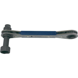呼び寸法:13×17mm ソケット長:13側26.5mm 17側26.5mm ギア数:24(15度送り) 全長:278mm 重量:290g 柄部形状:直シノ ソケット形状:12角 材質:クロムバナジウム鋼 表面処理:青色塗装 入数:6個