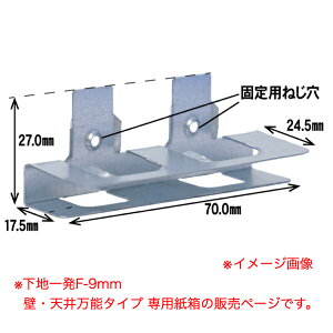 奨します。 下地一発Fタイプ 9mm(専用紙箱) 用途:壁・天井万能タイプ 材質:亜鉛鋼板 入数:本体85個・ビス170本