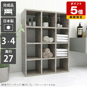 H-001 3×4 graystoneサイズ約幅740 奥行き270 高さ1045 mm。材質[本体]メラミン樹脂化粧合板[背板]プリント化粧合板。カラーグレーストーン。重量約22kg。仕様日本製完成品棚。