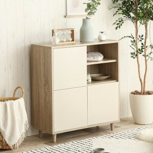 商品説明 幅90cmのワイドな扉付き本棚ロータイプ"Ravinto"。左右の扉内収納にはそれぞれ可動棚が2枚ずつ付いているので、収納したい本や小物に合わせて高さを調整可能な本棚■本体サイズ[外寸] 幅90×奥行30.5×高さ85cm...