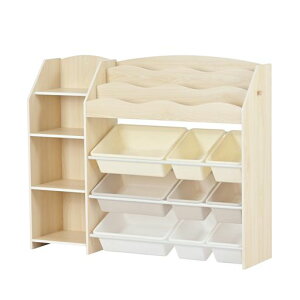 子供用品の保管 【多機能キッズ絵本ラック】:このモンテッソーリ式の子供部屋用収納には、絵本ラックとおもちゃ収納ラックが備わっています。このキッズ家具を購入すれば、子供用品を収納できるだけでなく、お子さま専用の読書スペー