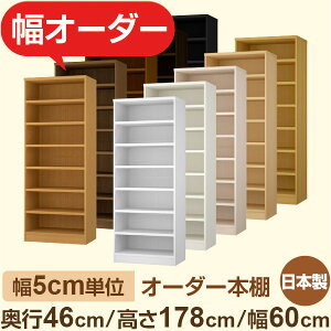 リビングや書斎の空いているスペースにぴったりと隙間なく設置できる、幅を1cm単位でサイズオーダーできるセミオーダー本棚。棚の高さを自由に変える事ができるので、文庫本、新書本、単行本、コミック、A5版、B5版の週刊誌...