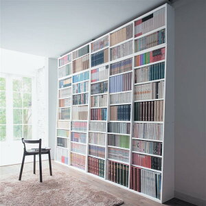 美しく全部隠せる、大量収納が可能な壁面収納書棚。光沢仕上げの前面の引き戸扉が高級感を与え、狭い空間でも省スペースの開閉を実現。設置場所を選ばないシンプルなデザイン。