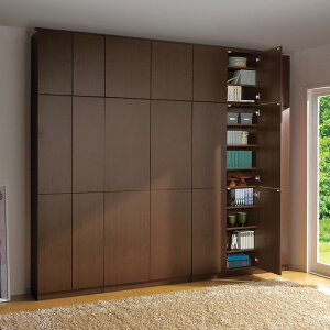 [完成品・国産]本を永く、大切に扱いたい方へ。木目が美しいアルダー天然木を使用した、贅を尽くした本棚です。本体に上置きを組み合わせれば、引き戸で省スペースながら大