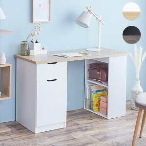 引き出し・開き扉収納・棚の3種類の収納スペースを備えた実用性の高い『Ella』収納付きデスク 商品名【幅120cm】Ella 収納付きデスク サイズ幅120cm×奥行50cm×高さ75cm 【商品重量】約30kg...