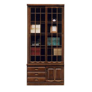 幅135cm、引き戸タイプの和風モダンな本棚。リビング小物の収納に便利な引き出し付き。細部にも緻密に製造された安心安全の大川家具です。埃の入りにくいガラス扉。 【商品コード:94...