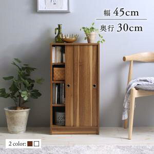 スリム 本棚 引き戸収納 幅45 奥行16 キャビネット 北欧 シェルフ 絵本棚 薄型 モダン 大容量