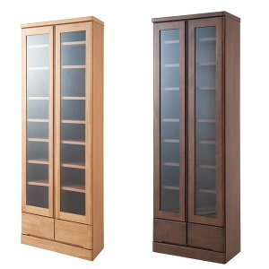 ベージュ ブラウン ダークブラウン 茶 木製 天然木 パイン材 木目 開き戸 ガラス扉 引出し付き 可動棚 幅60cm 省スペース スリム 日本製 国産 完成品 本 CD