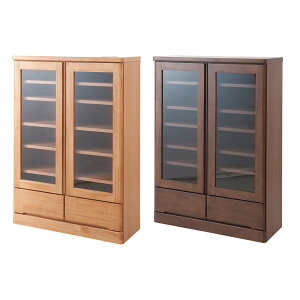 ベージュ ブラウン ダークブラウン 茶 木製 天然木 パイン材 木目 開き戸 ガラス扉 引出し付き 可動棚 幅60cm 省スペース スリム 日本製 国産 完成品 本 CD