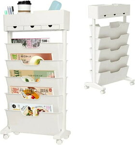 本棚 6段 マガジンラック 6段式 大容量 多機能ワゴン 書類収納ラック 引出し付き キャスター付き 省スペース 収納ラック 書類棚 薄型 コンパクト 収納ワゴン 資料整理 雑誌 漫画 収納棚