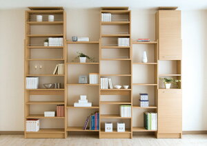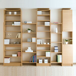 木目調のオープンシェルフです。 複数の専用アイテムを組み合わせることで、オリジナルのオープンラックを作り上げます。 本棚や、衣類収納、壁面収納、リビング収納や仕切りとしてのパーテーションなど様々な使い方が