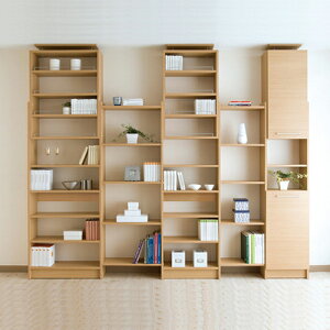 木目調のオープンシェルフです。 複数の専用アイテムを組み合わせることで、オリジナルのオープンラックを作り上げます。 本棚や、衣類収納、壁面収納、リビング収納や仕切りとしてのパーテーションなど様々な使い方が