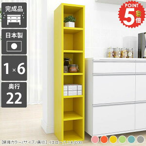 H-001 1×6/奥行22 aino本棚 省スペース すきま収納 カラーボックスサイズ約幅262 奥行き220 高さ1460 mm材質プリント化粧合板カラーピンク/オレンジ/イエロー/グリーン/ブル...