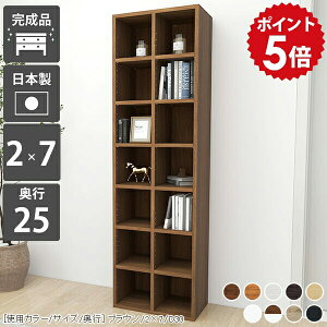 H-001 2×7/D25サイズ約幅502 奥行き250 高さ1700 mm材質プリント化粧合板カラーブラウン/ホワイト/ダークブラウン/チーク(北欧)/ブラウン×ホワイト(背板がホワイト)/ナチュラル/ホワイトウッド/オーク/ブラッ...