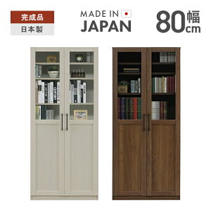 本棚 書棚 収納棚 完成品 幅80cm 扉付き 収納 棚 おしゃれ 大容量 木製 国産 日本製 キャビネット リビング収納 整理棚 本収納 ブックシェルフ 縦長