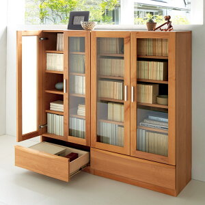 静けさに満ちた、心安らぐ読書空間を堪能できます。◆優しい木目が特徴のアルダー天然木を贅沢に使用した木製本棚。◆扉は静かにゆっくり閉まるソフトクロージン