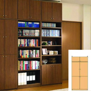 ミラー扉、板扉が選べるシンプルなデザインでスッキリとした印象のブックシェルフ。頑丈棚板で大量収納が叶う、人気のロングセラー商品です。サイズオーダー上置き(別売り)と組み合わせれば、壁面収納が実現。【POINT 1】 頑丈で大量
