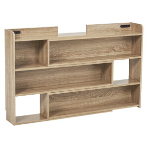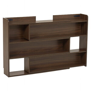 ベッドと壁の隙間に挟んで置くだけで枕元スッキリ収納。棚板の高さが変えられ、コンセント付きなので便利。セミシングルサイズ対応、幅80cm。