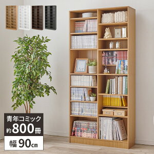 大容量のコミックラック ●可動式棚つき ●巾木よけつき ●転倒防止パーツつき 本棚 可動棚 コミック収納 漫画 ホワイト ウォールナット ナチュラル 木目調 シンプル リビングシェルフ...
