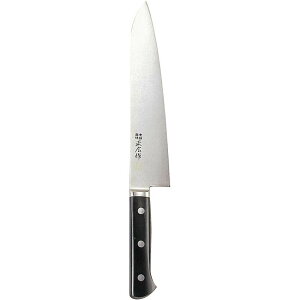 正広のオリジナル特殊ステンレス鋼の本焼牛刀シリーズ。職人用庖丁に開発実績のある正広オリジナル特殊ステンレスを使用した商品。サイズ母材厚:2.5mm、刃渡り:240mm。
