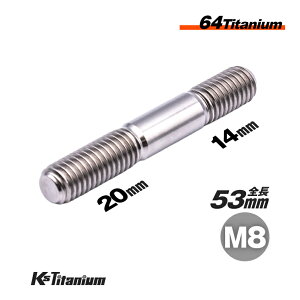 64チタン製 スタッドボルト M8×53 ピッチ:1.25 スレッド長:36mm のチタン製スタッドボルトです。 バイク 自転車のカスタムボルトとしてや旧車のレストアに最適です。 【素材】 チタンにアルミとバナジウムをバランスよく組み...