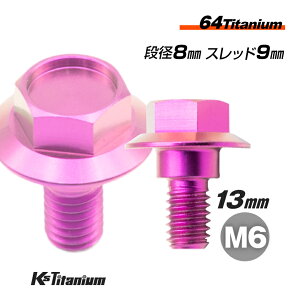 64チタン製 段付きフランジボルト M6×13 (08mm×04mm段付き) ピッチ:1.0 スレッド長:9mm のチタンボルトです。 バイク 自転車のカスタムボルトとしてや旧車のレストアに最適です。 【素材】 チタンにアルミとバナジ...