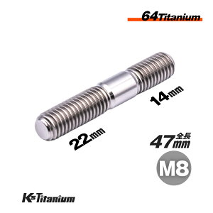 64チタン製 スタッドボルト M8×47 ピッチ:1.25 スレッド長:37mm のチタン製スタッドボルトです。 バイク 自転車のカスタムボルトとしてや旧車のレストアに最適です。 【素材】 チタンにアルミとバナジウムをバランスよく組み...