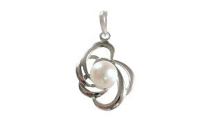 ピンクホワイト系の8mmあこや本真珠を使用した透かしの作りに繊細さと軽快さのあるペン ダントップです。バチカンは、オーバル形のデザインで、真ん中が星のようなお花型に抜かれておりその中と上下に3石ダイヤモンドをセッティングし