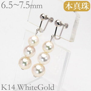大きさの違うあこや本真珠が3つ連なった、上品で可愛いイヤリング、スクリューブラタイプです。ほんのりピンク色のフェミニンパールです。真珠明細■あこや本真珠 ■大きさ:約6.5mm×2石、約7mm×2石、約7.5mm×2石...