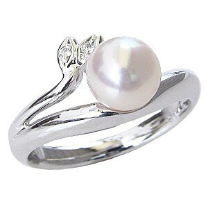 真珠 パール リング 指輪 6月誕生石 送料無料 ギフト対応 あこや真珠の魅力は何と言っても上品かつ優しさのある輝きです。 ピンクホワイト色の7mm珠の真珠を使っています。 ホワイトゴールドの地金に葉のダイヤモンドが2石輝きます...
