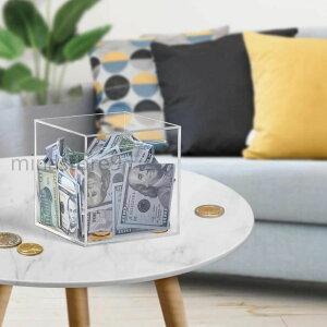 開かない貯金箱 貯金箱 クリアー 12cm おしゃれ 札 お札 紙幣 正方形 保管 100万円まで入る四角いクリア貯金箱|開けられない貯金箱 大容量アクリル貯金箱|入金だけして出金できない|毎日、お金が増えていくのを見る...