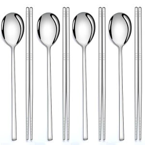 AOOSY スプーン 箸 4人用8点セット 食洗機対応カトラリーセット 四角形柄 韓国食器 ステンレス鋼製 鏡面仕上げ シルバー 軽いお箸 中空箸 来客用箸 業務用1.「サイズと材質」:ステンレス ミラー仕上げ...
