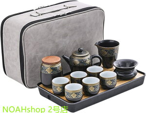 セラミック カンフーティーセット 旅行ティーセット トレイ付き ポータブルバッグ ブラックティーポット 茶こし