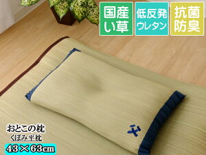 い草枕 「おとこの枕 くぼみ平枕」 サイズ 約43×63cm カラー - 組成 側地=い草(九州産)※メセキ織 中材=低反発ウレタンチップ100% ヘリ=綿100% 原産国 日本製 (低反発ウレタンチップ=中国製...