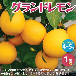 グランドレモンの実は、レモンの中でも育てやすく、皮が薄く、柔らかく、一般的なレモンより1.5〜2倍の大きさがあります。 早く収穫出来る品種で、1本でも実がなります! 味は、酸味が柔らかく、食べやすいほか、果汁が多いのが嬉しいポ