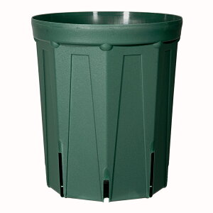 果樹や大型野菜の栽培に便利なポットです。野菜・果樹ポット 365型 支柱穴付き カラー:グリーン サイズ:直径365×H365mm 内容量:約22L 材質:R-PP。