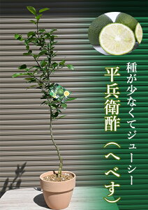 平兵衛酢(へべす)は酢みかんの一種で、かぼすやすだちに比べて皮が薄く、果汁が多く、栄養価の高い品種です。 樹形は直立性、自家結実性があるので、1本で実をつけます。 香りは蜜柑に似ており、ジューシーでまろやかな酸味です。 庭